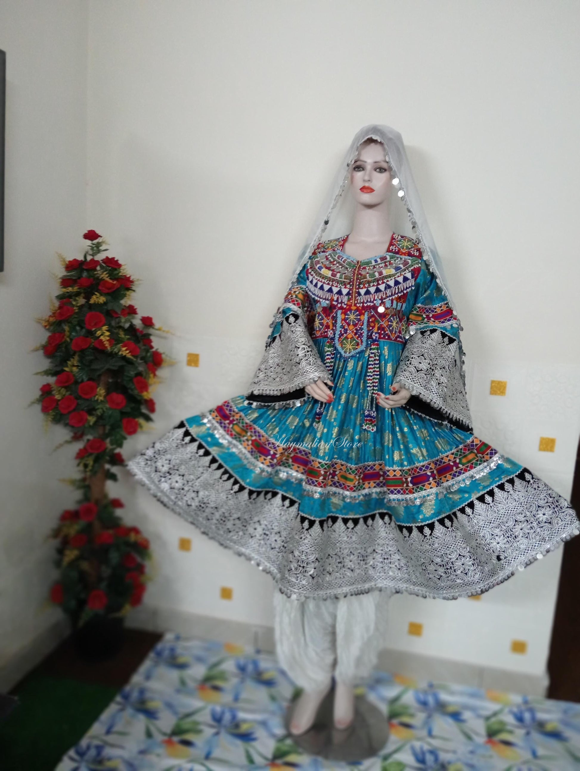 It is made of the finest quality fabric. Such type of ethnic embroidery design resembles the old Afghan or Gypsy tribal style embroidery.