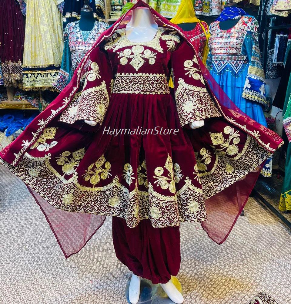 These Afghan clothes are prepared from good quality Satin fabric. A lot of mirrors are fixed on the dress, which shines in the light. Traditionally, such Persian Pashtun tribal clothes are used for special events like wedding, Nikkah, engagements. Many girls also like to wear it while performing art dances like Attan on high crowded stage. The design is newer and according to current fashion.