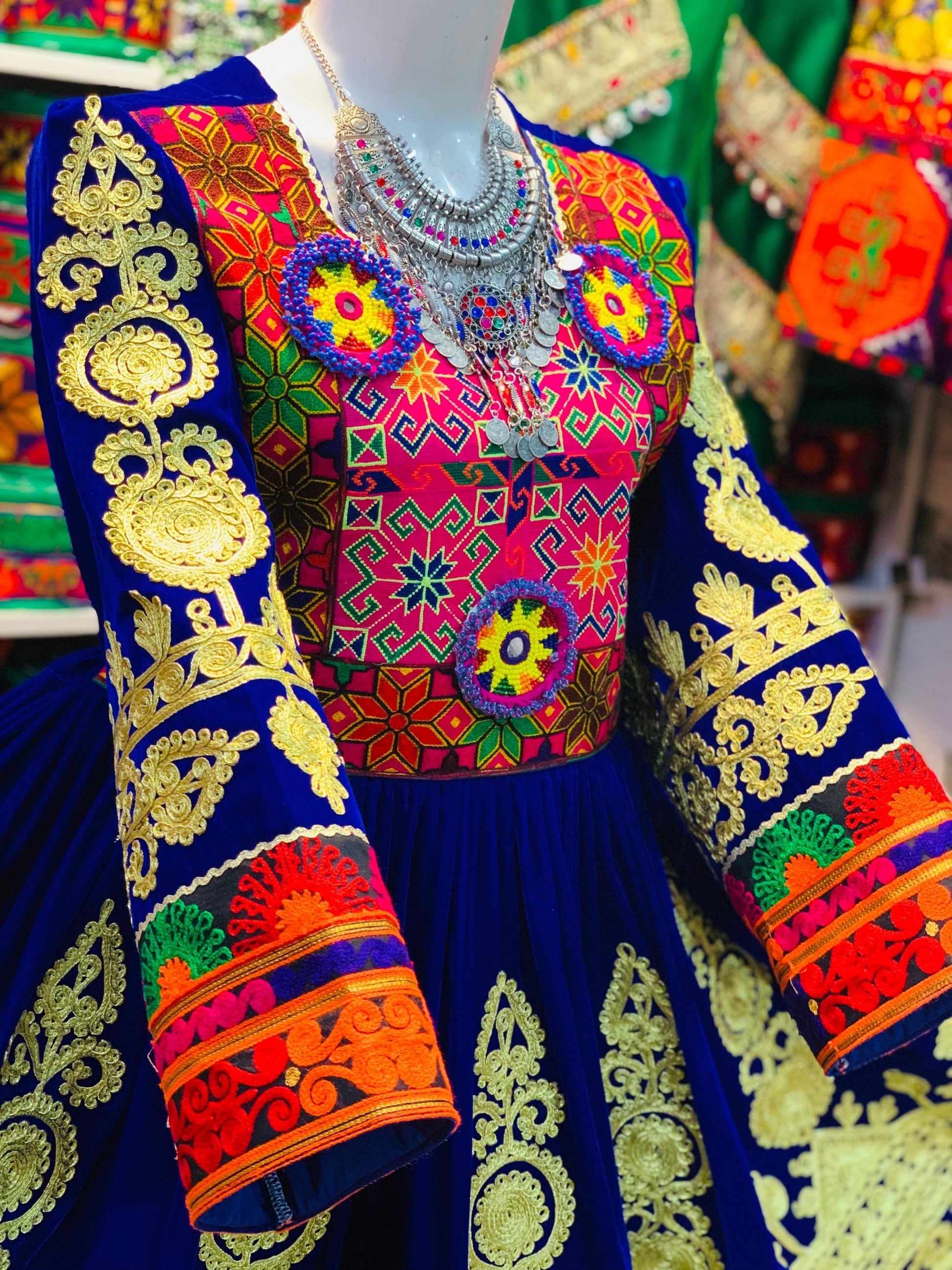 It is made of the finest quality fabric. Such type of ethnic embroidery design resembles the old Afghan or Gypsy tribal style embroidery.