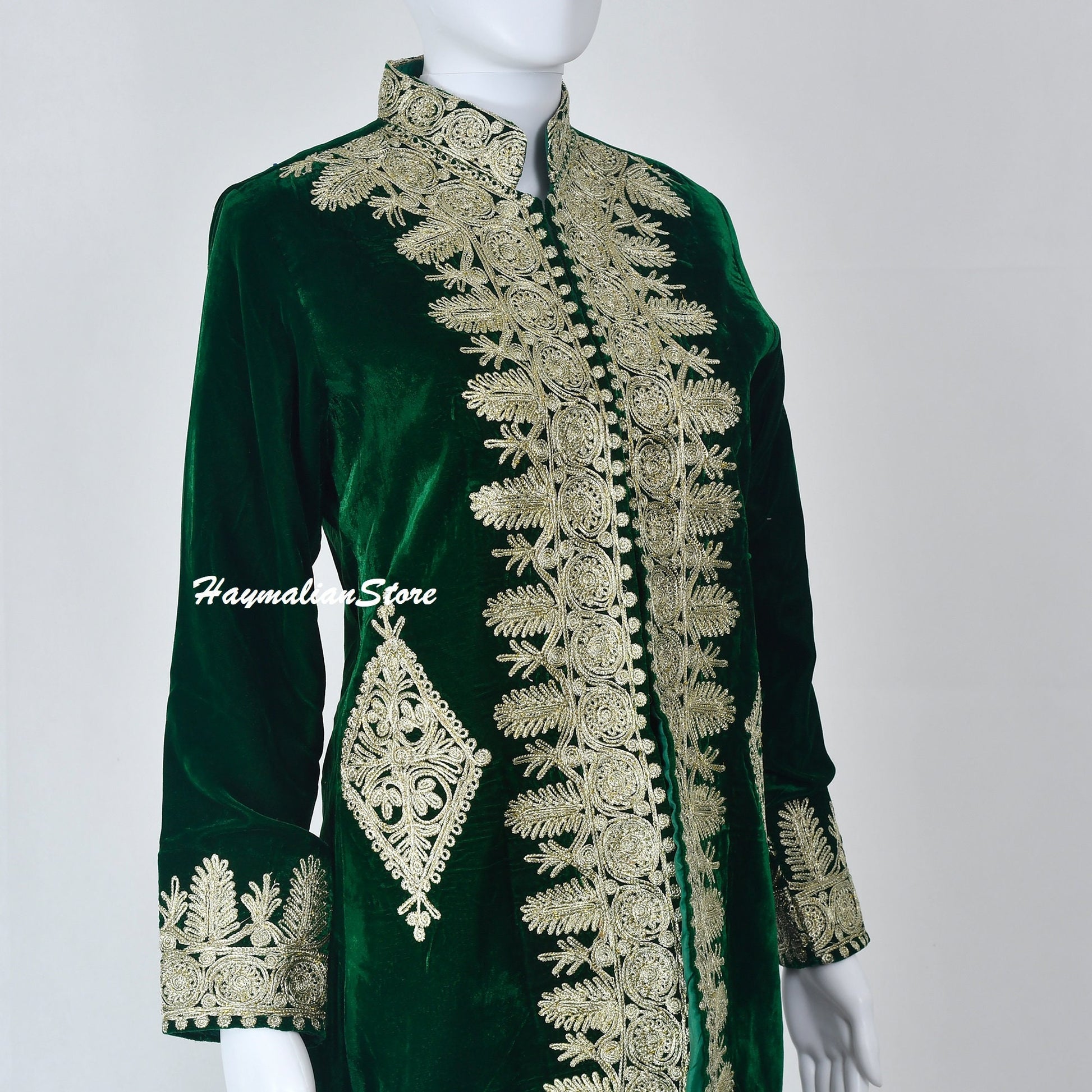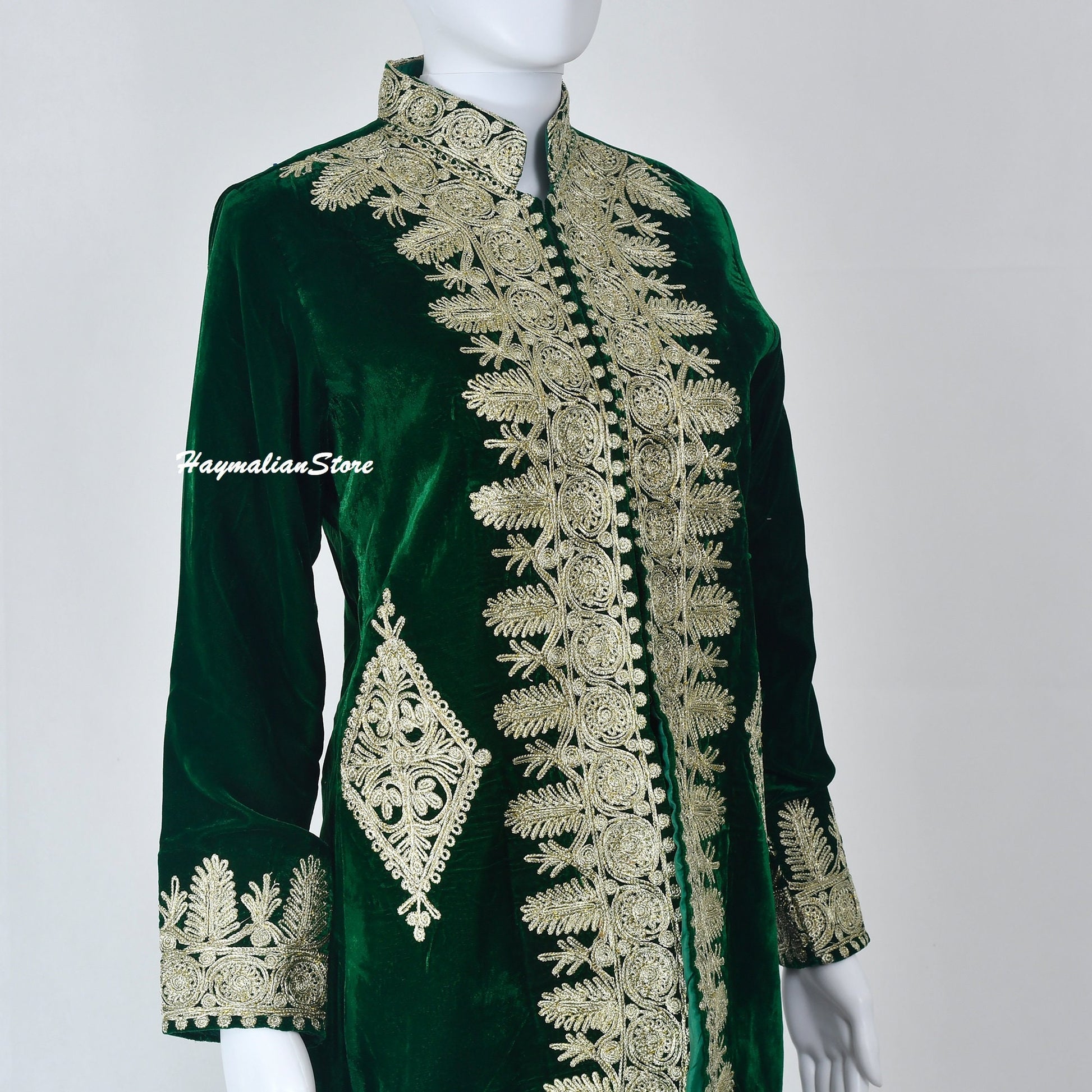 Every part of the dress and all the visible embroideries are genuine and handmade, meaning this needlework is done by hands, not a machine print.