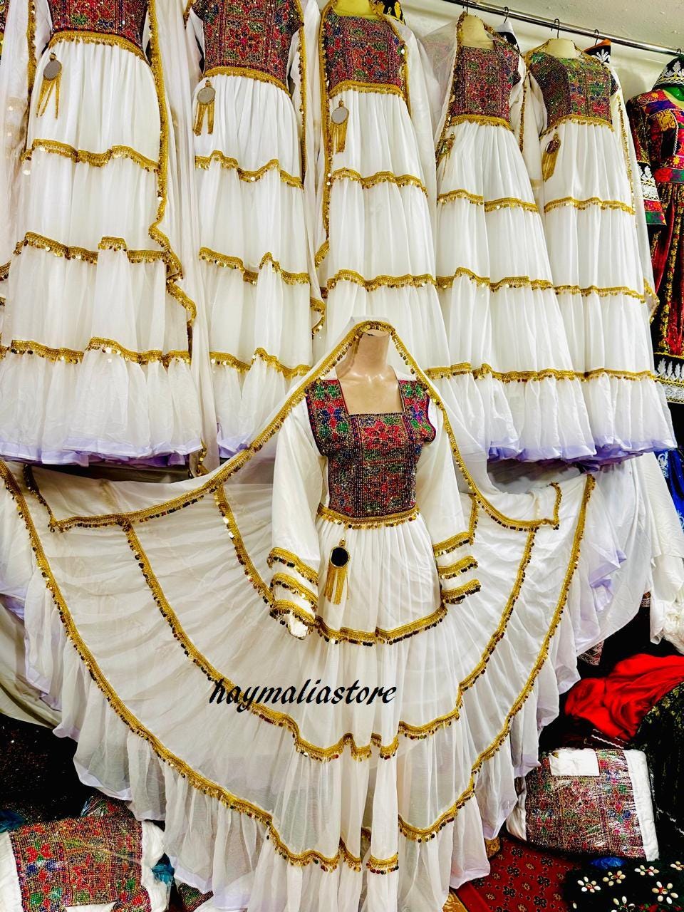 Long Frocks Afghan Kuchi Wedding long Dress: Multi-Color Chiffon Dresses