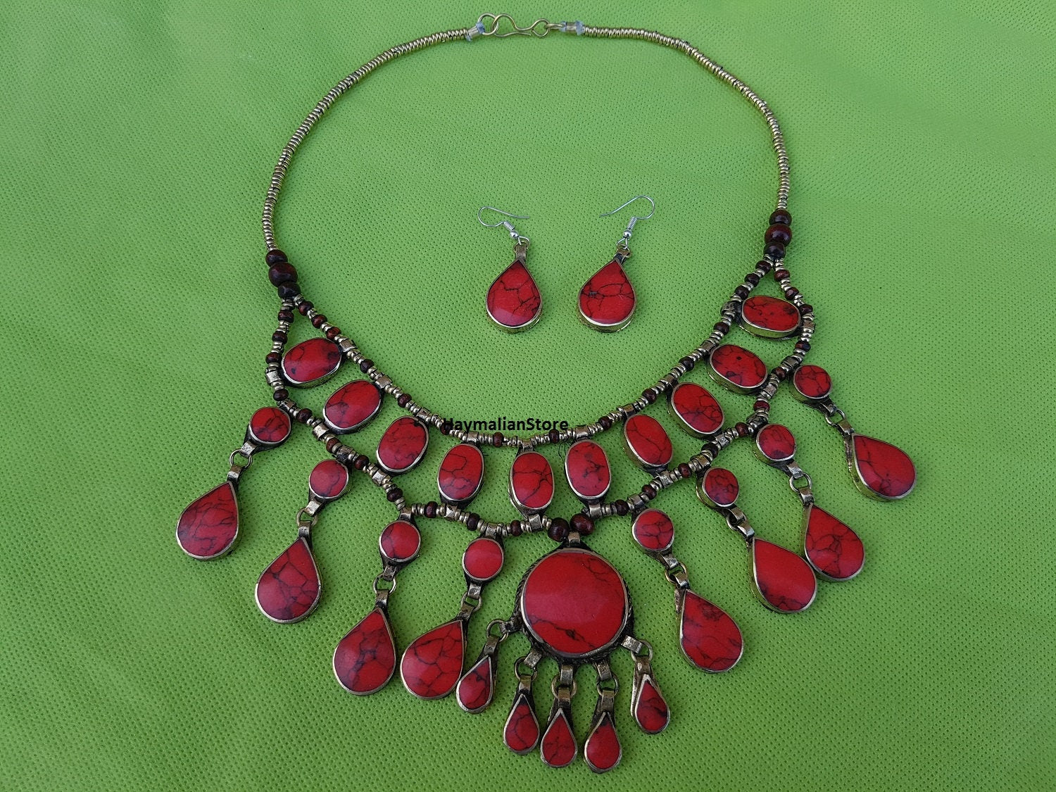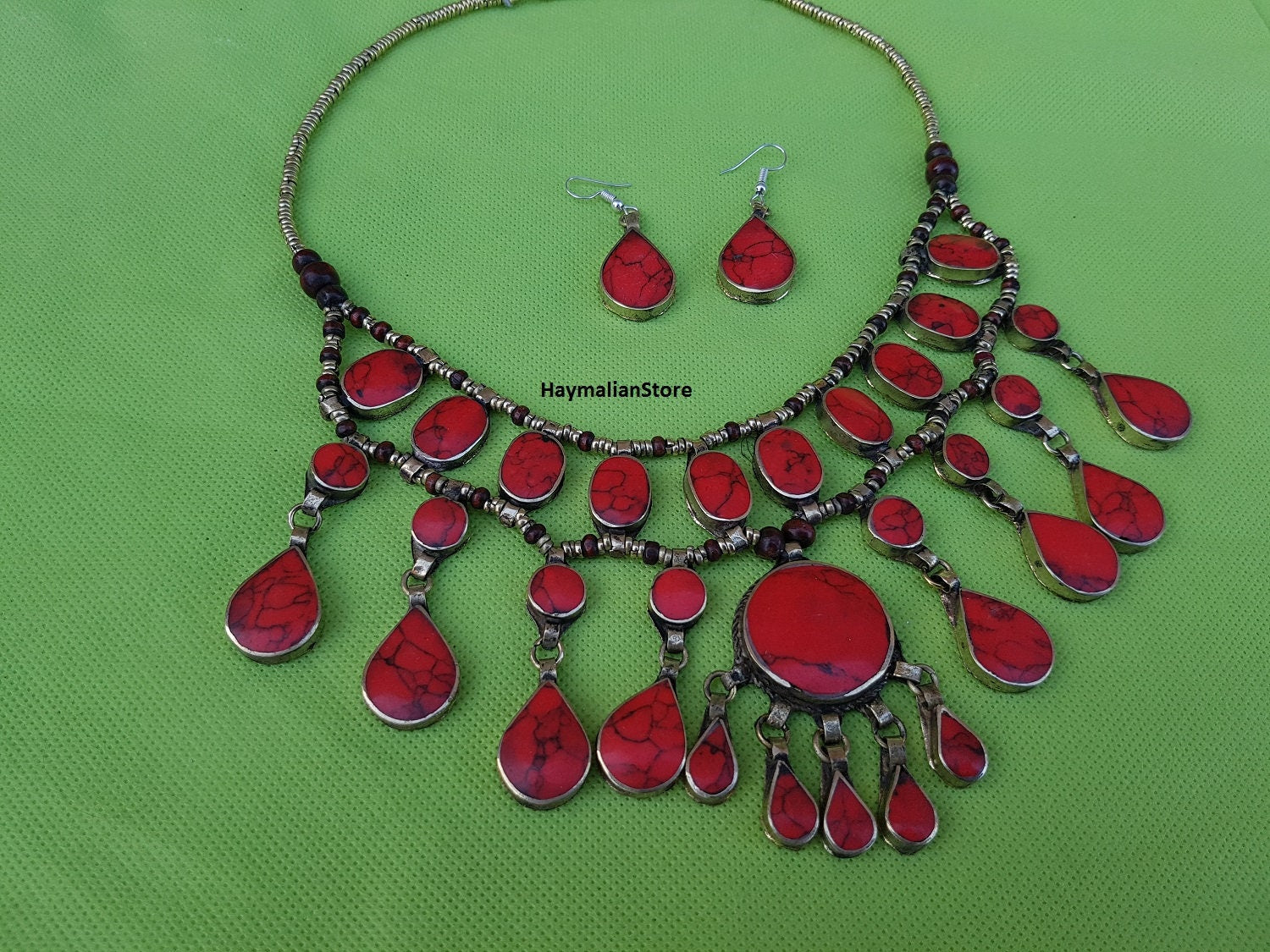 Red Coral Afghan Turkmen Tribal Ethnic Kuchi Necklace Circle 3 Layers
